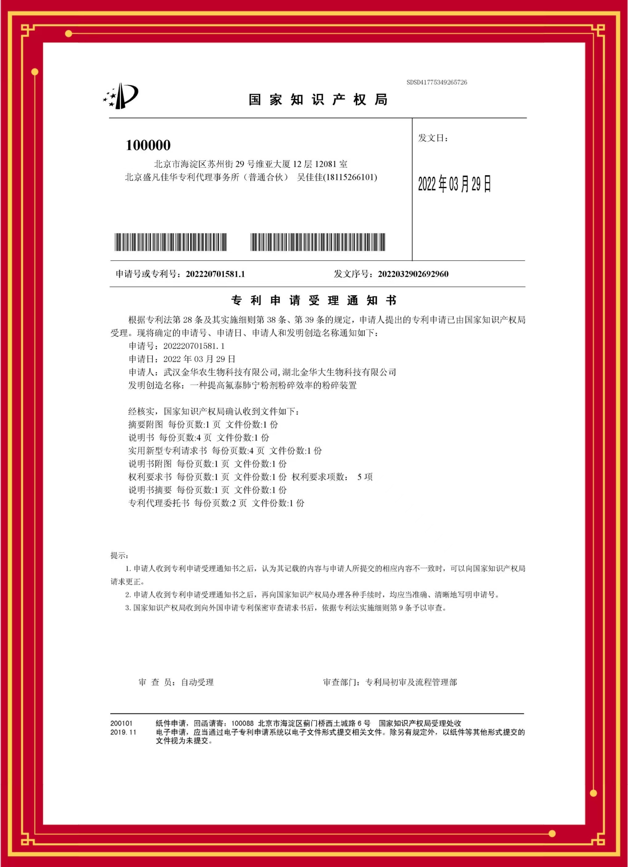 科技發(fā)明專(zhuān)利(氟泰肺寧):專(zhuān)利號(hào)—20220701581.1